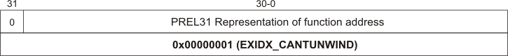 As a special case, if the second word of the EXIDX has the value 0x1, the EXIDX represents EXIDX_CANTUNWIND, indicating that the function cannot be unwound at all. If an exception tries to propagate through such a function, the unwinder calls abort or std::terminate, depending on the language.