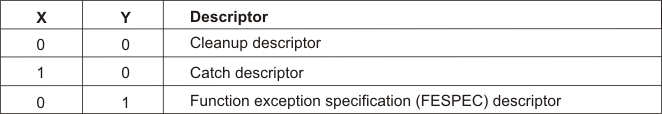 Bits X and Y in the scope encodings indicate the kind of descriptor that follows the scope: