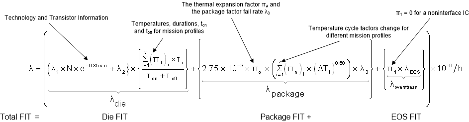 IEC TR 62380 の IC 故障率は、ダイ、パッケージ、電気的オーバーストレス (EOS) に関連する故障率の合計としてモデル化されています。ここで、