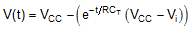 図 5-1 定義済レベルの非アクティブバスモデル図 5-1でモデル化されたように、アクティブ Low バスが高インピーダンス状態になると仮定します。CTはデバイスとバスライン容量の和、RはVCCに対するプルアップ抵抗です。必要な抵抗の値は、式 2 に示すように計算できます。